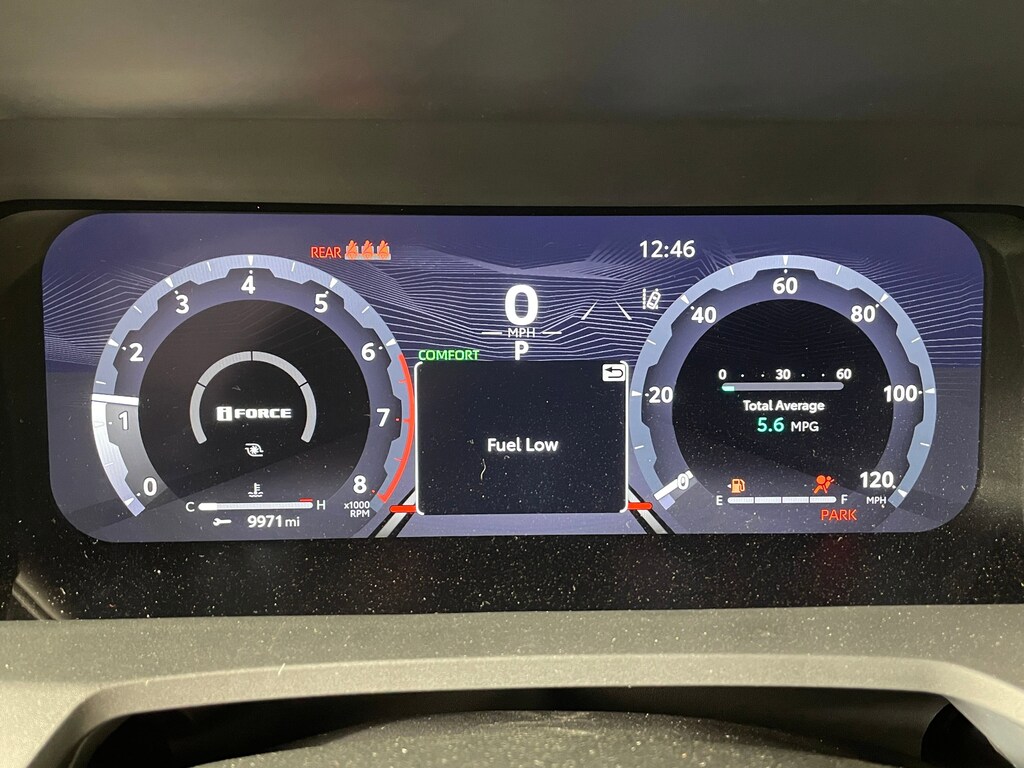 - 12.3-in. Digital gauge cluster with selectable gauges, driver assist, vehicle/trip information, and warning messages.
