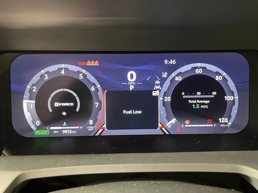 - 12.3-in. Digital gauge cluster with selectable gauges, driver assist, vehicle/trip information, and warning messages.